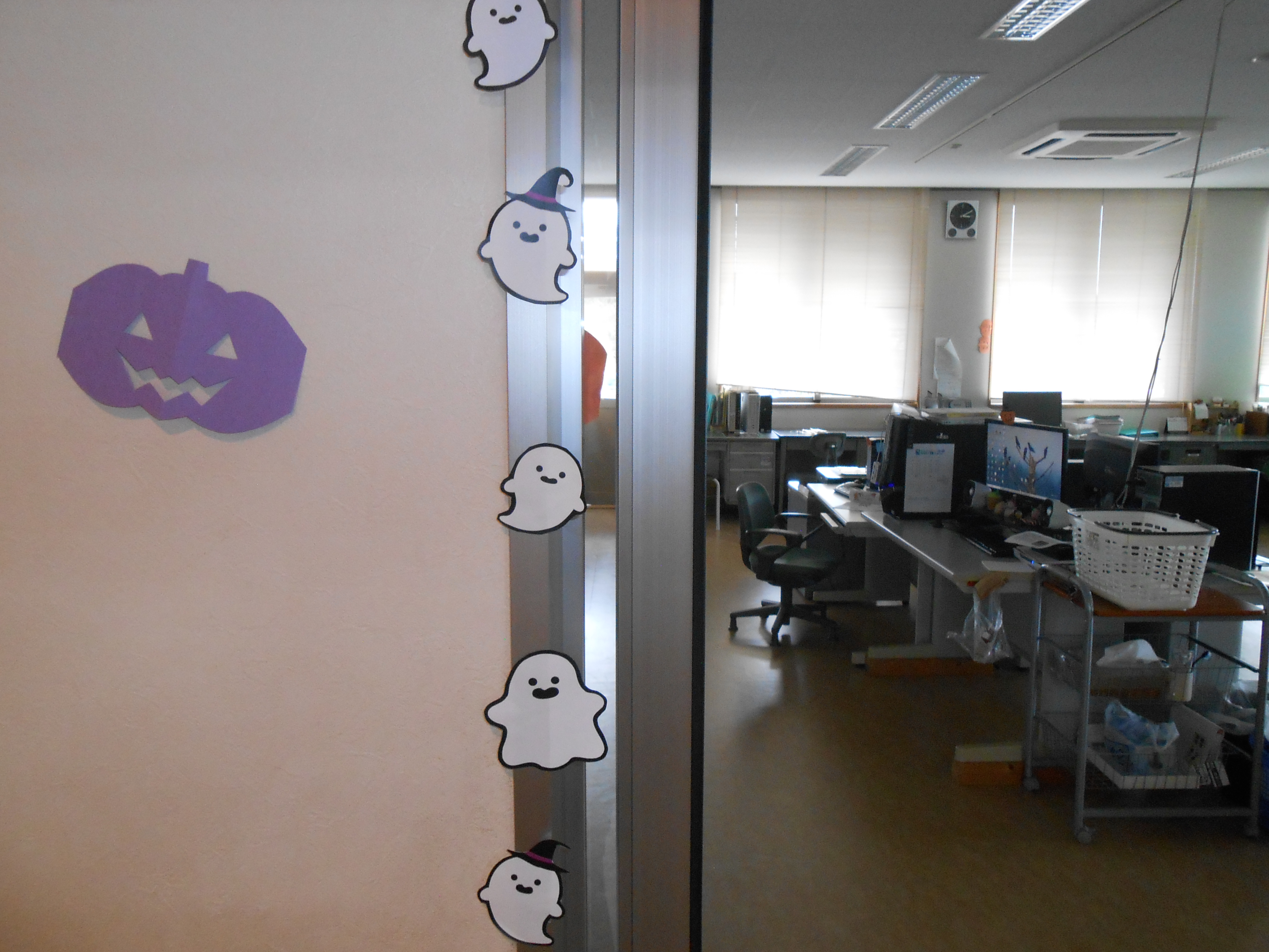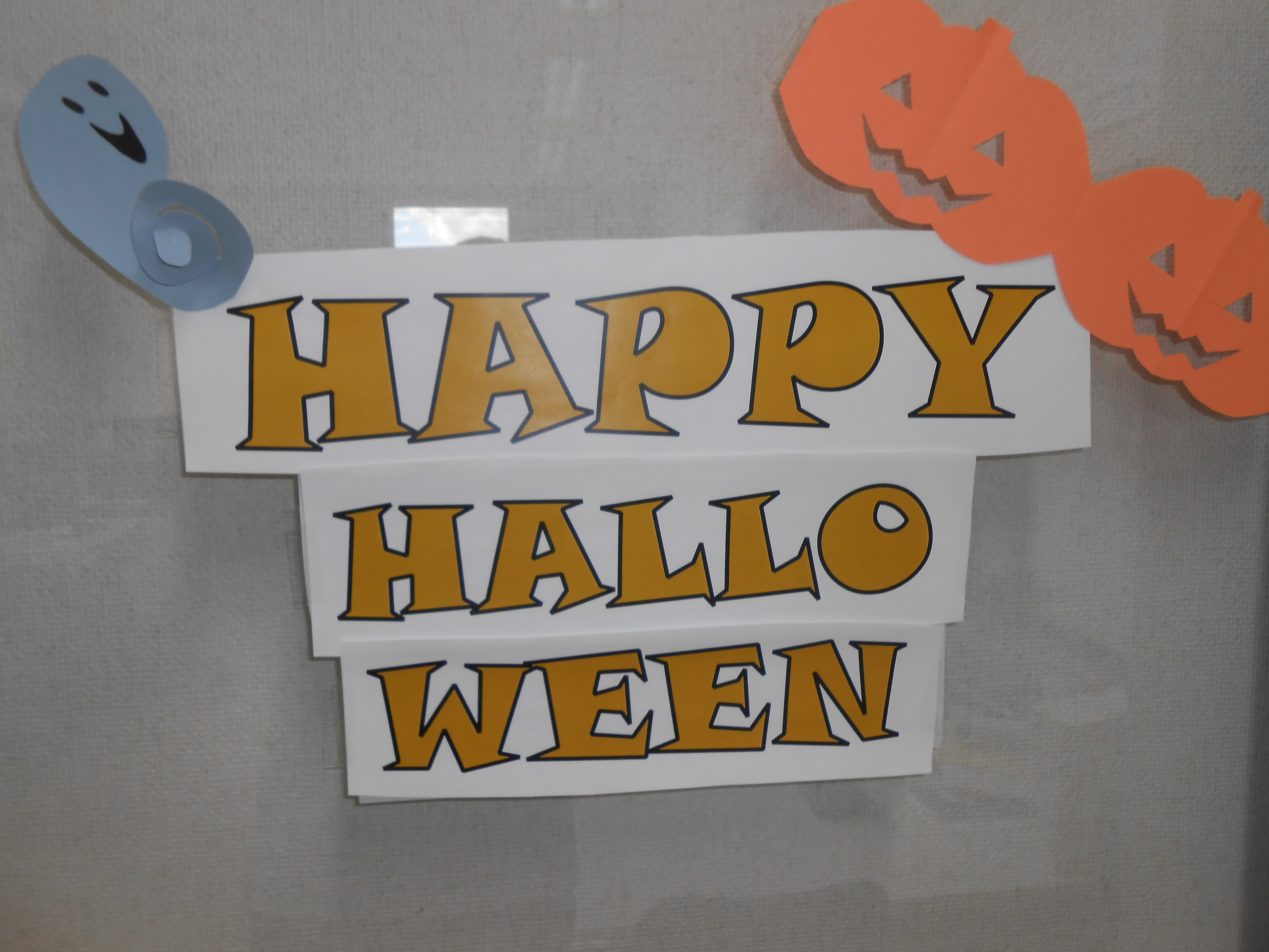 わらしべ全体にハロウィンの飾り付けをしました。お茶の時間にお話しや音楽を楽しみ、そして29日は仮装した職員が「合言葉は・・・?」といって仲間たちにお菓子を配りました。歓声が上がりお菓子をもらっていました。