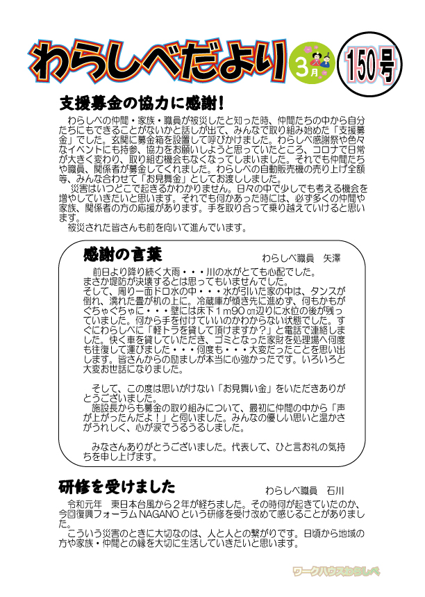 わらしべ便り2022年3月150号 掲載