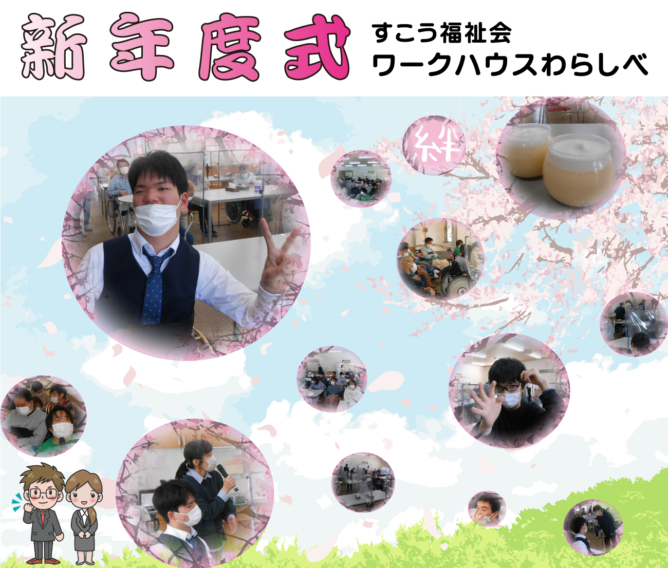 わらしべでは令和5年度の新年度式を行いました。新しい仲間の紹介や各部署の職員からのひとことがありました。