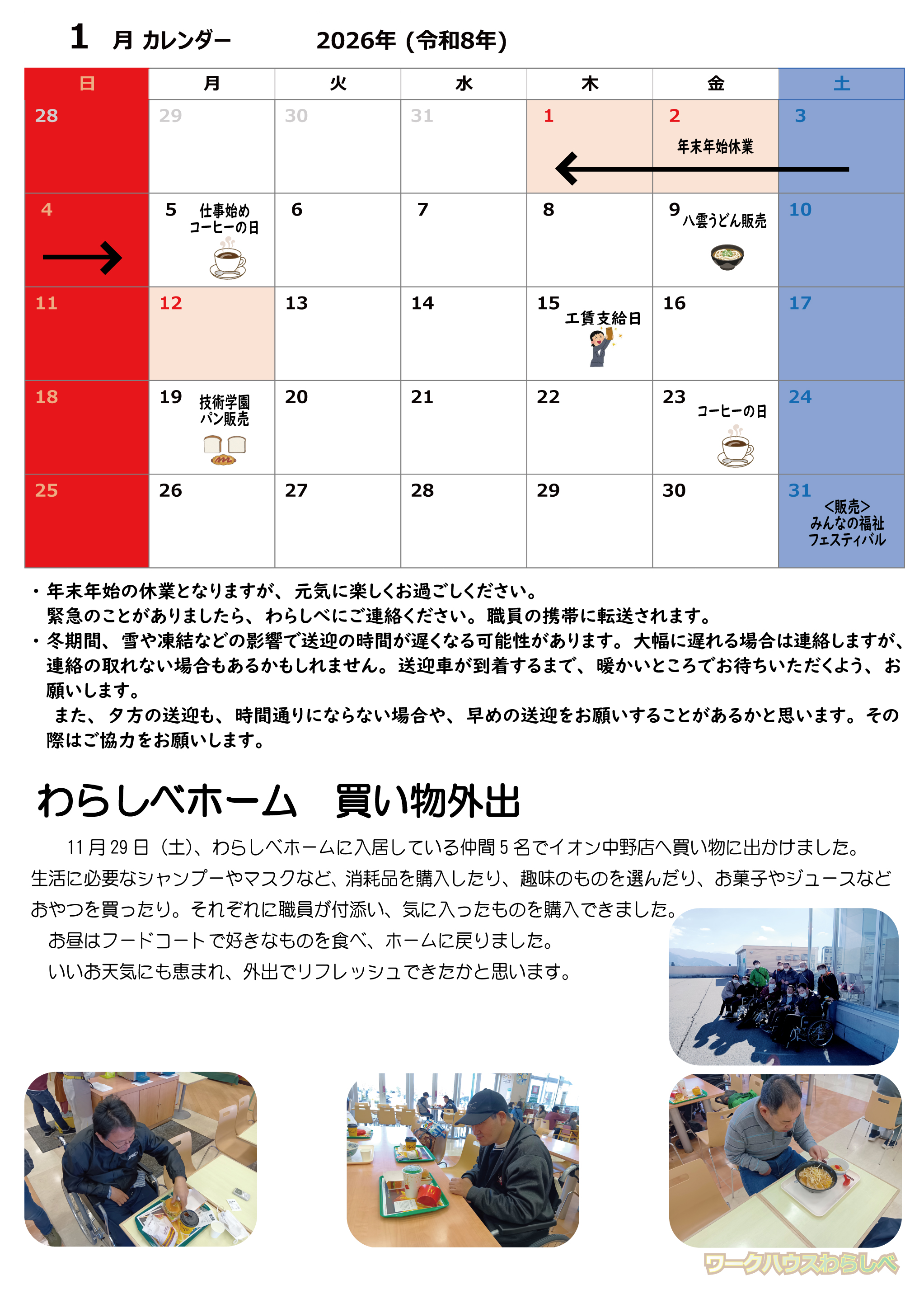 社会福祉法人すこう福祉会のホームページへようこそ。 法人や福祉施設に関する情報をお知らせしていきます。 社会福祉法人すこう福祉会は2005年に法人施設として現在地(高畑町)に開所、大勢の障害者の働く場として定着しました。 更新情報 2026.01.08 2025年11月15日わらしべ食事会 2026.01.05 2026年もよろしくお願い致します 上記以前の更新情報はこちら 賀 正